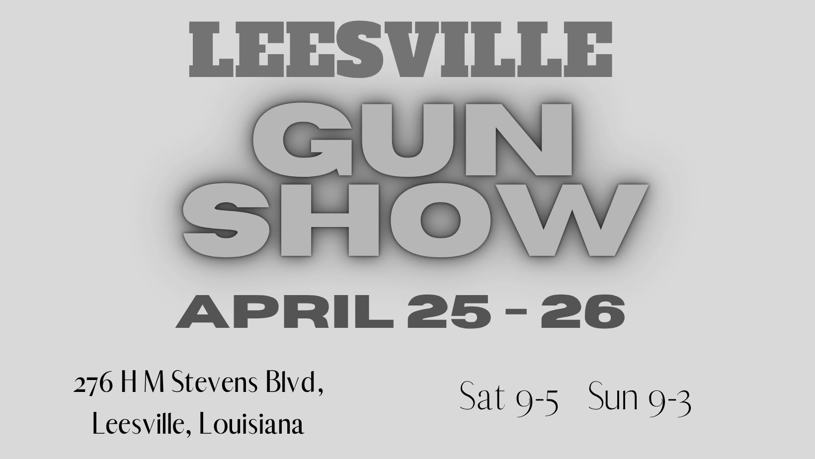 Join in for the Leesville Gun Show featuring dealers with new and used, reloading supplies, knives, and much more!